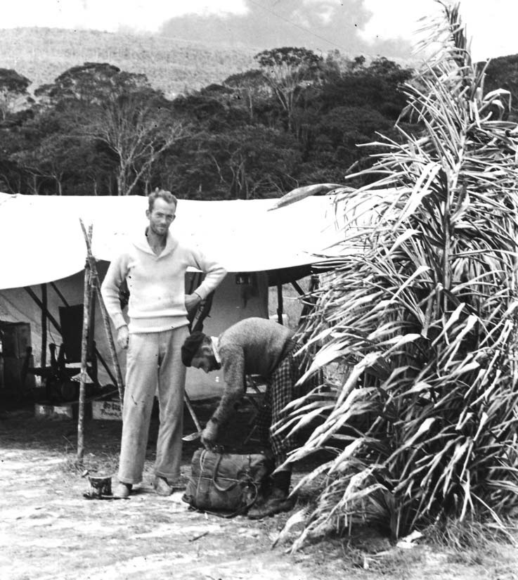 Gustavo Heny y Cap Félix Cardona Puig preparándose para buscar una ruta terrestre a la cima del Auyantepuy. Colección Enrique Lucca.